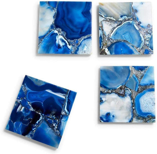 Two's Company Blue Agate Coasters With Resin Base, Set of 4