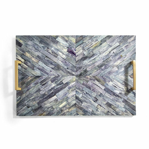 Two's Company Greystone Mosaic Tile Decorative Tray With Brass Handles