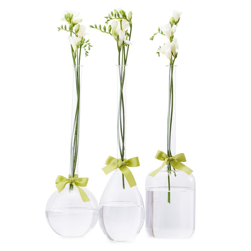 Two's Company Sleek And Chic Vase Trio With Sage Green Ribbon