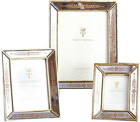 Two's Company Verona 3-Piece Set Gold Leaf Mirror Photo Frames