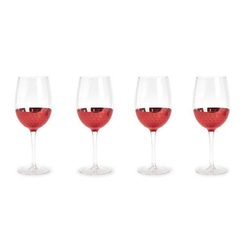 Two's Company Red Hot Set of 4 Faceted Wine Glasses (16 oz each)
