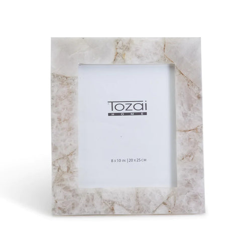 Two's Company Set of 2 White Marble with Blue Agate Inlay Photo Frames (4x6" and 5x7")